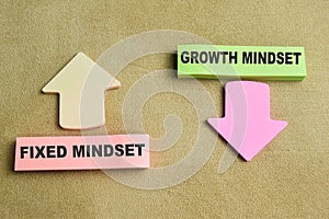 | Concept of Fixed Mindset or Growth Mindset write on sticky notes isolated on Wooden Table |