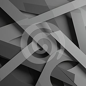 | Abstract composition featuring overlapping geometric shapes with varying shades of gray. The angular, intersecting forms create a sense of depth and complexity, with smooth textures and sharp edges. Each shape casts subtle shadows, enhancing the three-dimensional effect. The monochromatic color scheme gives the image a modern and minimalist aesthetic, suitable for digital or conceptual art. |