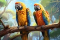 Colorful macaws sitting on a branch in a zoo. Generative AI. |