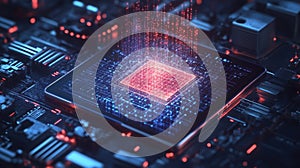 | Binary data stream flowing into cpu, processing information on futuristic computer motherboard, showcasing advanced technology and computing power AI generated |