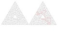 | a maze puzzle is displayed alongside its solution, marked in red, against a clean white backdrop. the puzzle is intricate and geometric. |