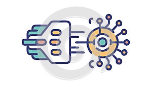 | A symbolic vector illustration showing data from a circuit board flowing into a brain-like icon. This icon represents artificial intelligence, neural networks, machine learning, and advanced digital processing. Ideal for tech companies, scientific research, and AI development, demonstrating intelligent systems, vector design Generative AI |