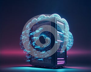| Online cloud data storage rack concept. Cloudscape digital online server for global network business. Web database backup computer private infrastructure technology |