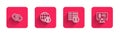 | Set line Mining bitcoin from laptop, Cryptocurrency Bitcoin, and Blockchain technology with long shadow. Red square button. Vector. |