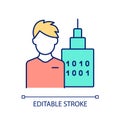 | Software engineer RGB color icon. Programmer work on responsive algorithm. Coder professional for corporate job. Computer specialist to work with information technology. Isolated vector illustration |