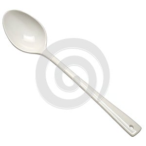 | "A sleek white spoon with a long handle, isolated on a white background. Perfect for kitchenware catalogues and cooking concepts." |